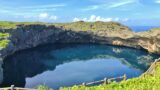 神秘的な場所。青い海と、深い池。不思議な景色。