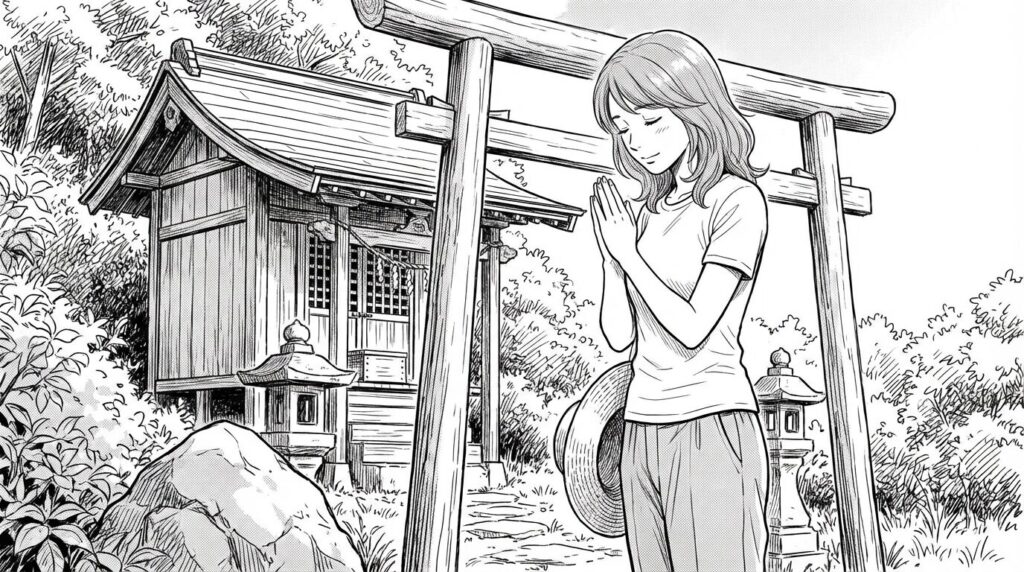 神社の前を通る時は、一礼してから通り過ぎるようにしている。地元の人たちの信仰の場所だから、敬意を持って接することが大切だ。