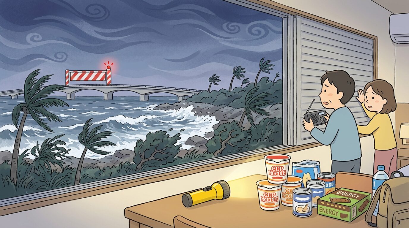 都会で台風を経験するのとは全く違っていて、橋が封鎖されたら買い物にも行けないし、病院にも行けないし、飛行機にも乗れない。完全に孤立した状態で台風をやり過ごすしかないっていう現実が、離島での台風の厳しさを物語っている。