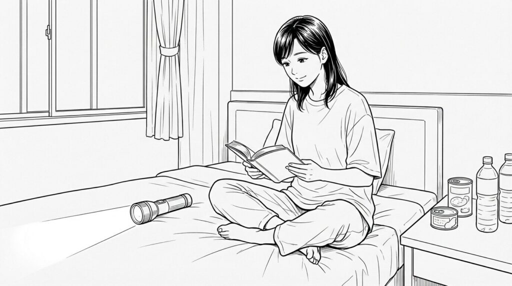 停電していない時は、スマホやタブレットで映画を見たり、読書をしたりして時間を過ごす。事前にコンテンツをダウンロードしておけば、インターネットが繋がらなくても楽しめる。