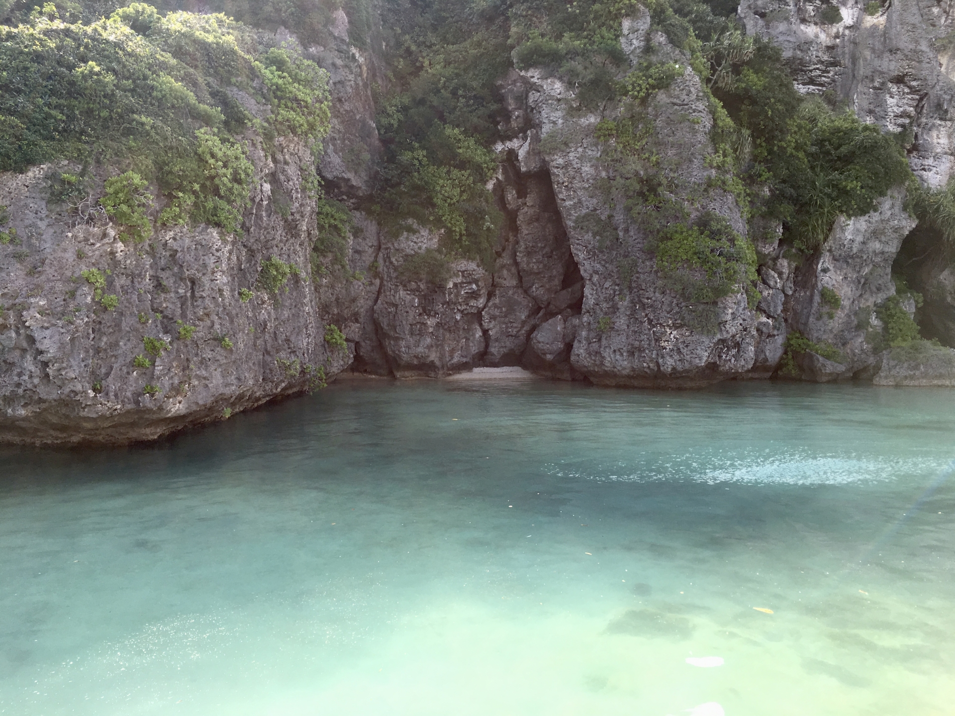 ヤマトブー大岩の南側には、小さな入り江があって、この入り江の水面の色が独特で幻想的。