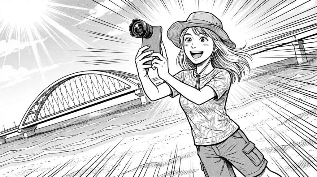 橋の下に立つと「こんなに大きな橋が頭上にあるんだ」っていう感動と同時に、人間の技術力のすごさも実感できる。総事業費399億円という金額を聞いたときは想像もつかなかったけど、実際に橋の真下に立ってみると「これだけのお金をかける価値があったんだな」って納得できた。