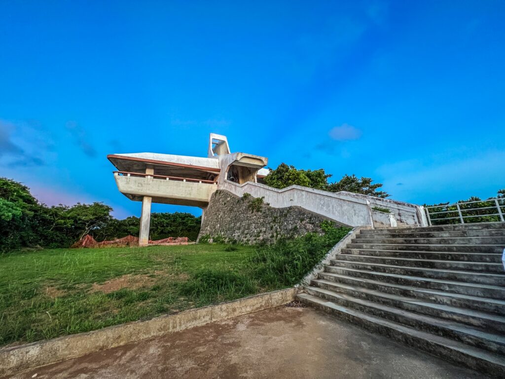 牧山展望台。伊良部島で一番高い場所にある展望台。サシバっていう鳥の形をしてて、遠くからでもすぐわかる白い建物。
